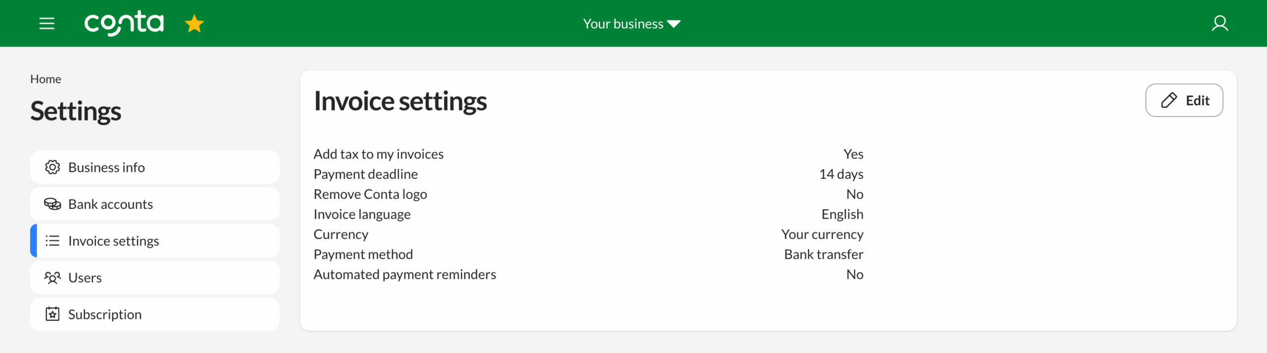 To turn on automated payment reminders, head to your business settings, which you can find in the top-middle menu: